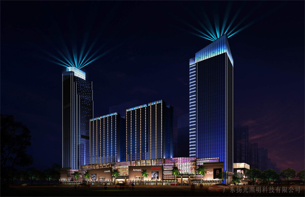 高層建筑頂部燈光打亮,突出建筑頂部輪廓,增強建筑的遠觀效果,吸引遠觀的客人。