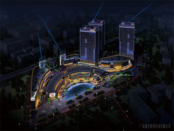 建筑:商業(yè)裙樓東西立面及塔冠為重點照明區(qū),裙樓南北立面商業(yè)內(nèi)街為次照明區(qū)。