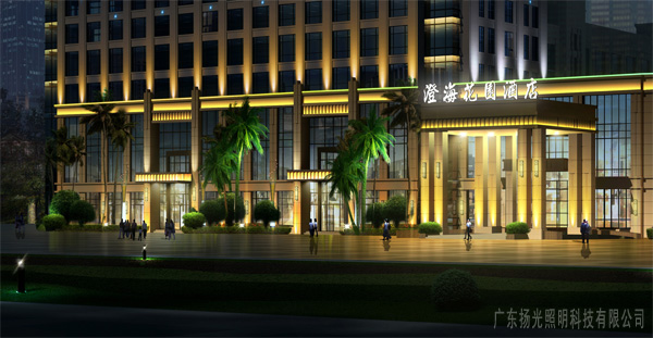 澄?;▓@酒店大樓為燈光主體,體現大樓作為地標式建筑的高端大氣 ,絢麗繁華,優雅現代的建筑風格特色,以燈光照明提升整個酒店的價值和檔次,突出建筑物的特征,業態,風格,飾面、材料、環境及建筑,打造成具有特色燈光效果的地標式建筑。
