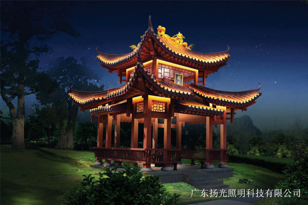 沿湖兩岸為游船夜游通道的主要景觀視點,采用RGB變色投光的照明手法,讓湖岸樹木在夜晚的璀璨藝術燈光映襯下彰顯出五彩繽紛,夢幻絕倫,無限遐想的高雅意境。而公園內側園林小道及景觀點采用純凈的燈光光公,寧靜安詳的氛圍。一動一的結合,演繹一幅生動的園林夜景畫卷。