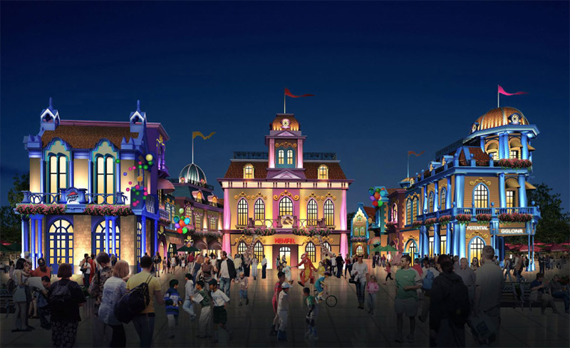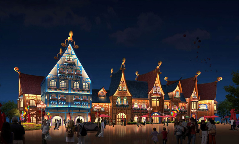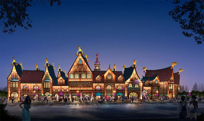 童話大街建筑泛光照明工程項目主要由巴拉莫風格、布達佩斯風格、科隆風格、呂貝克風格、米蘭風格、慕尼黑風格、尼斯風格、紐倫堡風格、托斯卡納風格、熱內亞風格、圣彼得堡風格、尼斯風格等組成,是專為少年兒童打造的旅游項目。
