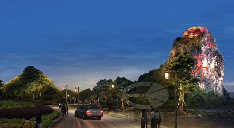 入口山體“樂養(yǎng)”字體燈光設計+山體燈光