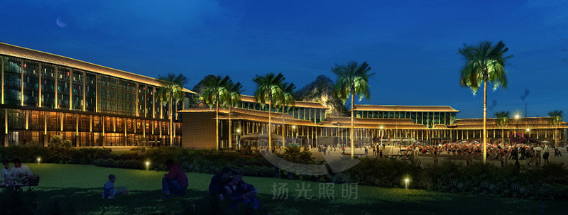 廣場商業(yè)街、宿舍位于項目中心位置,是人流聚集點,夜間為亮度最高區(qū)域。運用燈具大面積洗亮建筑頂部,使其成為區(qū)域內的視覺焦點。吸引人群聚集于此。