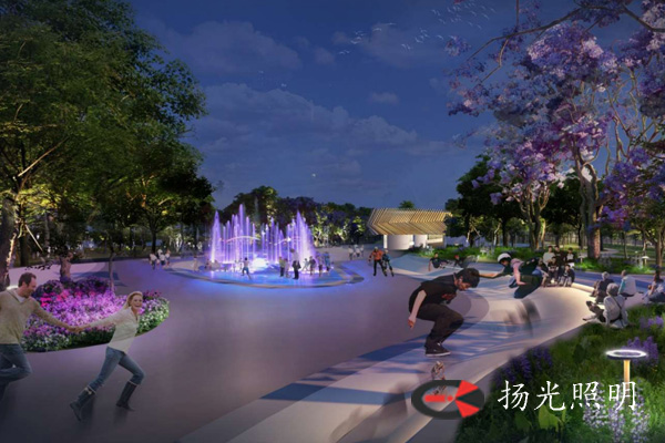 游玩場(chǎng)地是指人們長(zhǎng)時(shí)間逗留的,用于運(yùn)動(dòng)、休閑、玩耍的景觀場(chǎng)地。這些場(chǎng)地包括購物中心室外、公園、酒店等的兒童游樂場(chǎng)、籃球場(chǎng)、滑板場(chǎng)地等,以及社區(qū)附近的休閑健身場(chǎng)地。在設(shè)計(jì)照明時(shí),應(yīng)特別注意兒童活動(dòng)場(chǎng)地的亮度柔和、不眩光,少用射燈、投光燈等強(qiáng)烈光源,以確保兒童的安全和舒適。